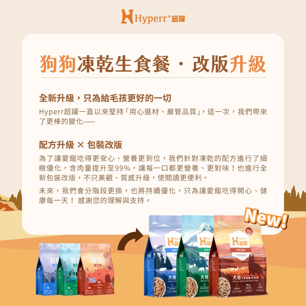 - Hyperr超躍 狗狗凍乾生食餐 升級改版公告