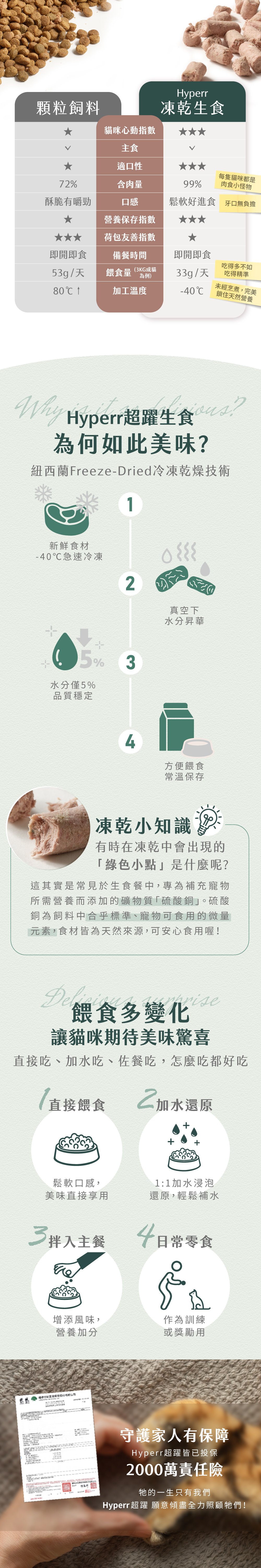 - 冷凍乾燥製成,濃縮4倍鮮肉營養及精華,保留肉絲紋理及天然原肉濃郁香氣。